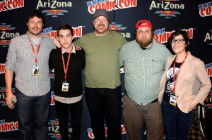 NEW YORK, NY – OCTOBER 12: (L-R) Kent Osborne, Jeremy Shada, John DiMaggio, Pen Ward, and Rebecca Sugar attend the TimesTalks Adventure Time during New York Comic Con 2013 at the Javits Center on October 12, 2013 in New York City. Photos courtesy of Cartoon Network. 24181_001_0335.JPG (Photo by Theo Wargo/WireImage)