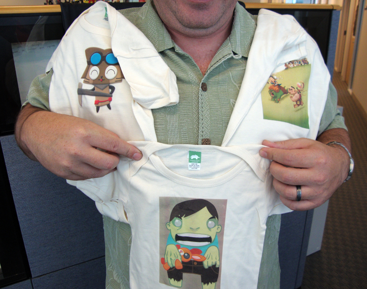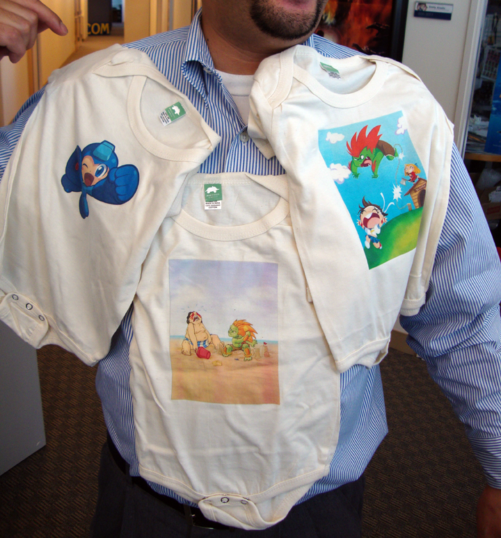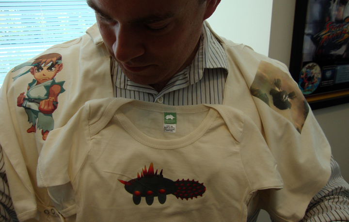 Checking out my Google reader this morning, and came across these really cute Capcom Unity shirts that were made for expecting parents over there. Very cute! I think I might make some for my little one. I especially like the one with Chun Li riding Blanka and the one with Blanka making E Honda cry.