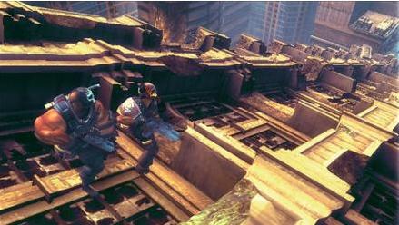 As some of you might know Army of Two was big on upgrades and co-op. In this game, you have that weird creepy guy that pops out of nowhere, asking “Do you want to buy some weapons?” Aside from the fact of where he appears and just humor him because he’s there to help you…for a price (of course)! He allows you to buy weapons and upgrades for the current weapons you have. Most of your money is earned through missions but you do find the occasional money laying along with shields and health.