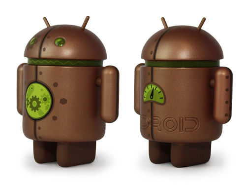 Andrew Bell previewed some of the Android figures on his site on Friday, and then was at the New Moon Show that same day as well. He gave the owner of MPH an Android figure, which I got to snap a shot of. Here’s what he looks like,