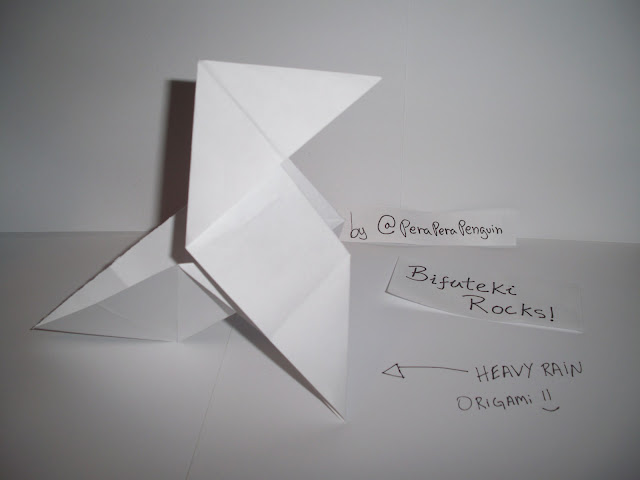 Last week, as you are aware, we held a contest for all of you to make an origami figure in order to win a copy of the Playstation 3 exclusived Heavy Rain. While we received a lot of great entries, we had to choose just one.  And the winner is….The person who sent us this video… @peraperapenguin!
