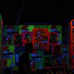 So, I finally had time to check out the Faile & Bast Deluxx Fluxx Arcade (158 Allen St. NY, NY aka Reed Space Annex), oh boy was I amazed. So we stepped in and was looking to actually pay to play but in reality it was totally free! If you were to buy some tokens you’d get a special clip of some sort, I just bought the token as a souvenir. There’s about seven or so setups and a Foosball table in the far back in another room. I’m sure the entire place looks wicked at night since the walls are lined with black, white, and neon artwork along with black lights. There was absolutely no point to any of the games – they are interactive art. I only took one video (see below) because they are basically all the same. There are no instructions to any of the games; Player 1 & 2 Start buttons, arcade stick, and 2-4 buttons – move the art around and press a button to perform an action. Let the pictures explain for themselves.