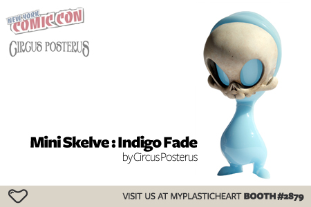 Kathie Olivas and Brandt Peters will be coming to NYCC with a plethora of new releases produced by Circus Posterus. MPH will be debuting the newest Mini Skelve in the beautiful Indigo Fade colorway. Standing at about 4 inches tall, 50 pieces will be available at myplasticheart booth #2879 for $50. We’ll also have a showcase featuring both production and custom figures from the Circus Posterus line available for sale as well.