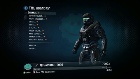 The customization in Reach is vaster than the other titles and thankfully they improved it from Halo 3. In Reach, you can change not only your helmet this time but add extra features to each individual part all the way down to the knee guards. The more you rank up in the game, you will unlock other armors. The down side is that its only for show and does not enhance your character in anyway male or female Spartan.