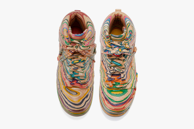 Haroshi x Nike Dunk is a wooden sculpture of skatedecks used but famous skates, such as P-Rod, Lance Mountain, Eric Koston, Brian Anderson, Cory Kennedy. This is soo dope if this could be made into an actual shoe and not just be a sculpture that would be soo dope. Did I mention it was soo dope?