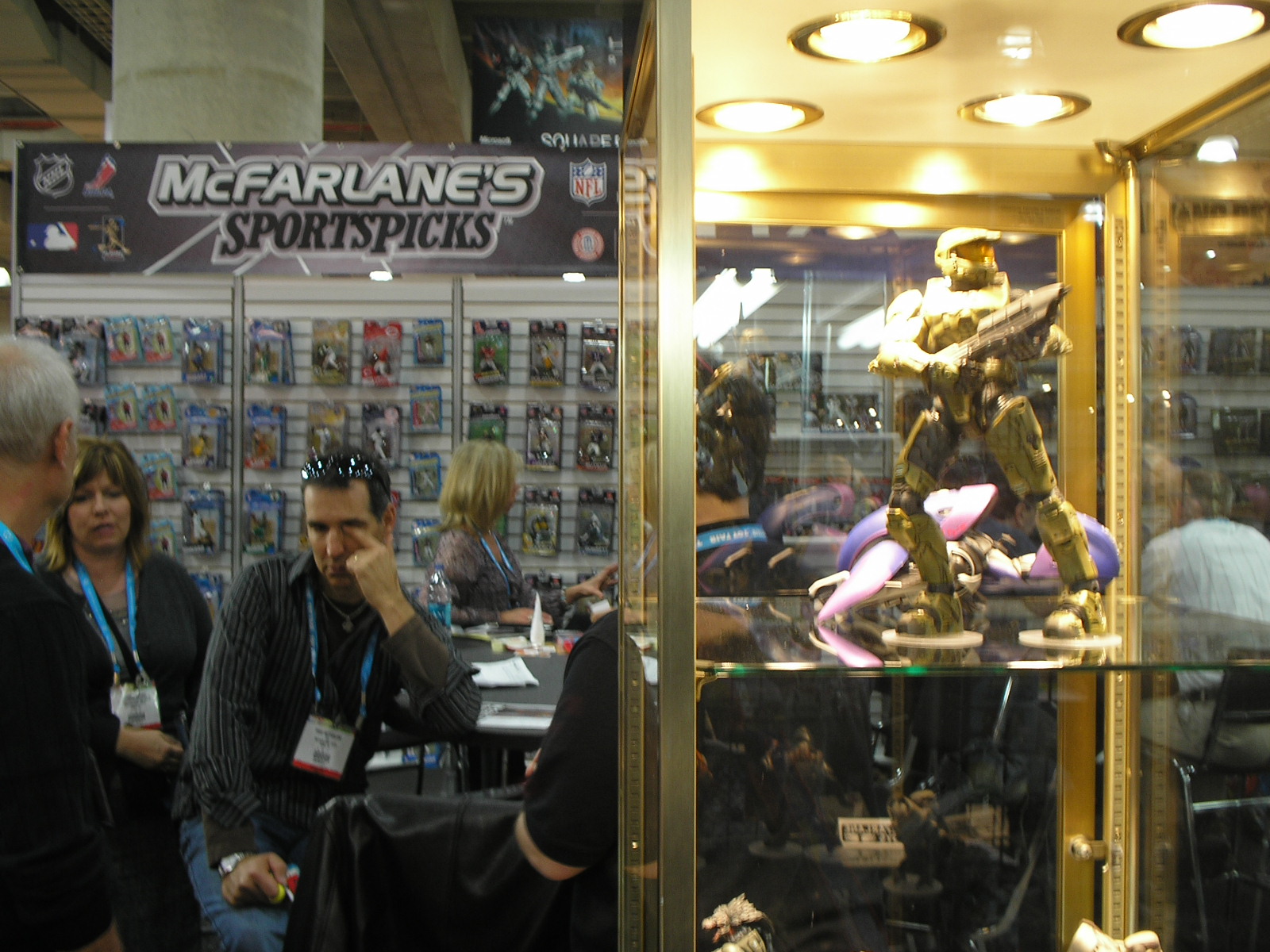 Todd MaFarlane photobombing Master Chief at the McFarlane Toys Booth