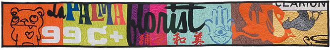 Now these are some pretty snazzy quilts. Crating quilts aren’t usually considered to be cool but Amy Ahlstrom has certainly done a good job of making them awesome. Check out some of her urban/graffiti inspired quilts below and on her site.