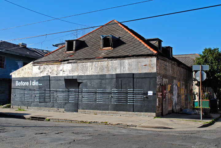 This is a really cool art project the utilizes an abandoned location and gets the community involved to make an interactive piece of art. It’s located in New Orleans and so far it’s been such a success that the project is being documented for a book. Check out our gallery for some shots of the wall and check out Candy Chang’s website to read up on the details of how this project came together.