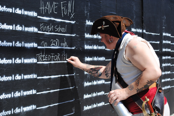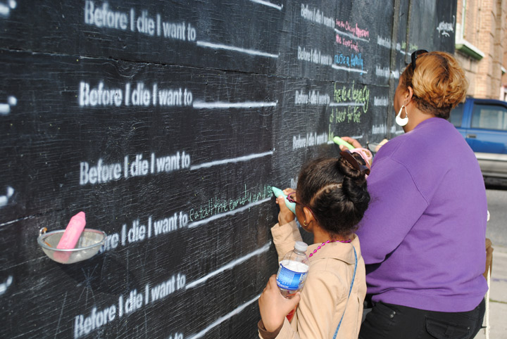 This is a really cool art project the utilizes an abandoned location and gets the community involved to make an interactive piece of art. It’s located in New Orleans and so far it’s been such a success that the project is being documented for a book. Check out our gallery for some shots of the wall and check out Candy Chang’s website to read up on the details of how this project came together.