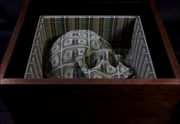 Artist Scott Campbell has made a name for himself with his amazingly beautiful sculptures carved out of money and now he is debuting his work in Los Angeles this weekend. Noblesse Oblige is Campbell’s new show opening on March 19th at OHWOW Gallery where he will be showing off more of his money carvings as well as work done in other mediums including drawings done with graphite on the inside of an ostrich eggshell. This sounds like a pretty awesome show that should not be missed if you live in the L.A. region.