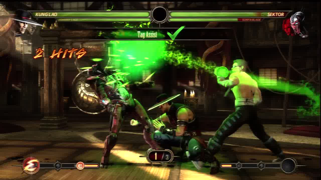 This revamped version of Mortal Kombat starts off with everyone dead and the only one left alive is Raiden, who is being tossed around by Shao Khan. It would seem that Earth realm failed and all hope is lost until Raiden sends images of the future to his past self as a warning of things to come. The approach by the creators of revamping the story with a “second chance time paradox” move is a bit risky but it actually made sense. I understand it was their way to retell the story and give more insight on a lot of characters especially introducing the human forms of Smoke, Cyrax, and Sektor. The game’s story mode goes through certain characters story in different chapters. For example you start Chapter One as Johnny Cage and move through the story as him until you need to move onto another part of the story and switch to another character. This way of storytelling is a total improvement from past MK titles.