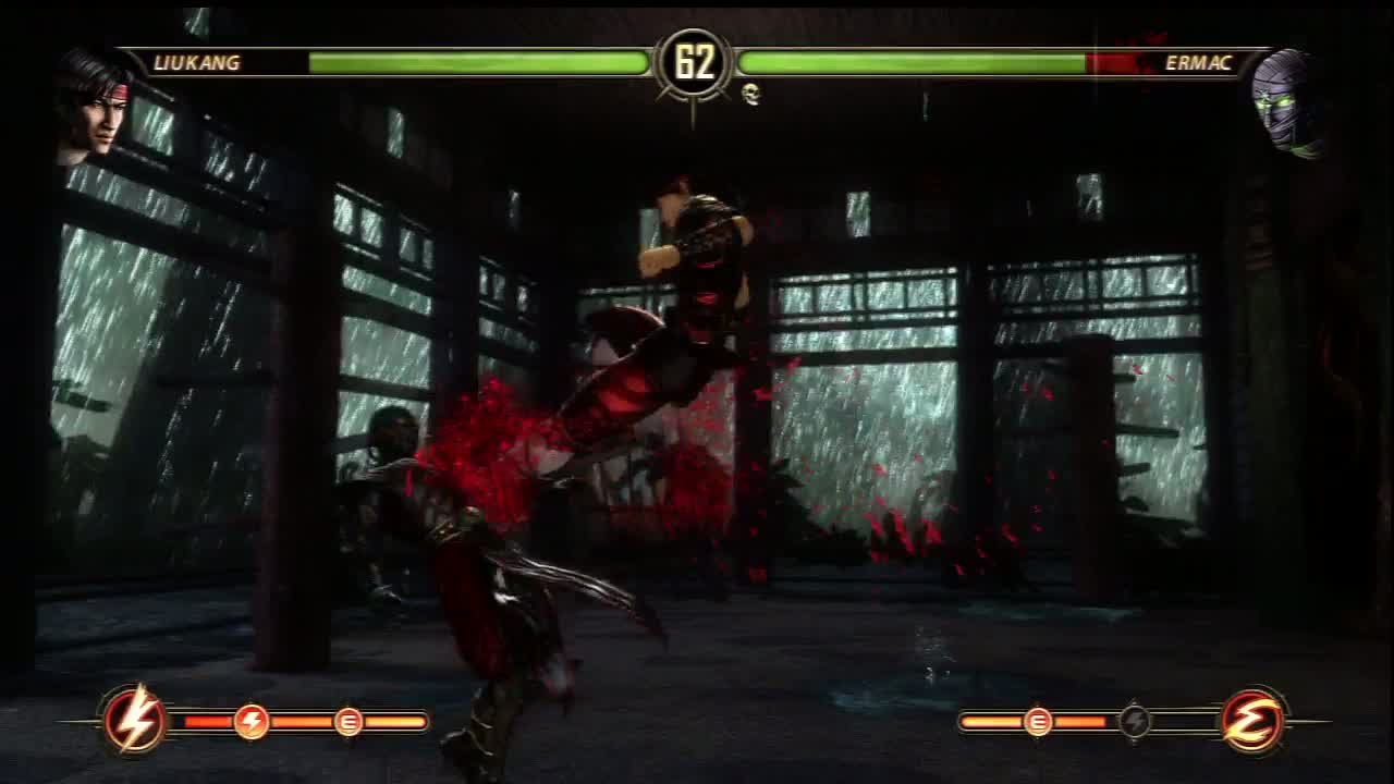 The fight mechanics in this game are totally revamped as they should be. The fight mechanics of Mortal Kombat has evolved since Mortal Kombat 3. I am glad that they kept it for this long and it has been improved with great chain attacks and a decent juggle system that is not over powered. The newest feature is the 3-level “special” meter at the bottom of the screen. The first level enhances your powers, second level gives you a combo breaker and the last feature allows you to do an X-ray move. The X-ray move is a new and welcomed addition to the MK fight mechanic and brings a whole new look and feel to the fight as you pound on your opponent. The body damage animation is a great. Seeing your character and your opponent deal a lot of damage onto one another and seeing the results with cuts, ripped clothes and blood flowing out of wounds is much appreciated.