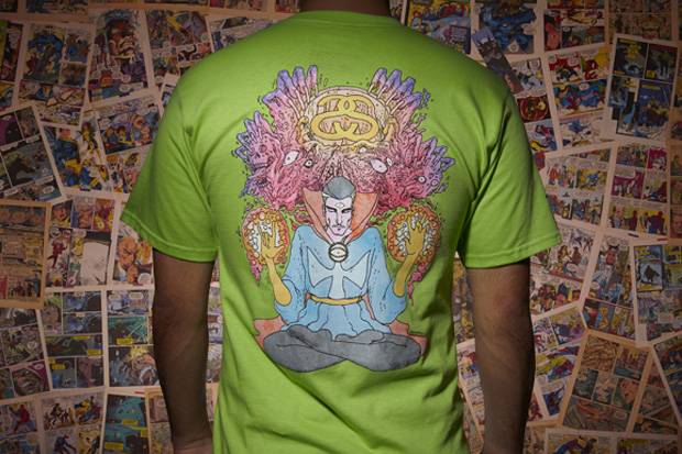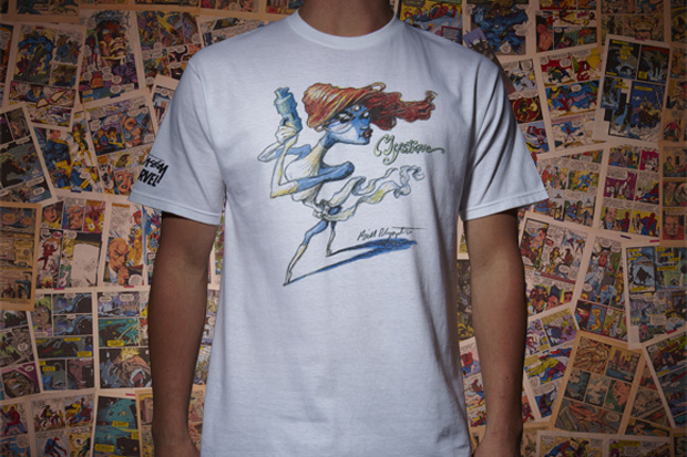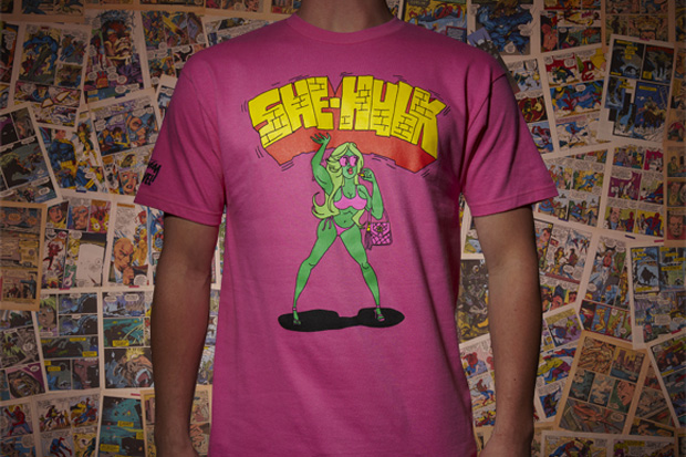 Series 2 is out! The artist roster includes James Jarvis (Thing), David Shrigley (Incredible Hulk), Todd James (She-Hulk), Noah Butkus (Dr. Strange), Will Sweeney (Eternity), John K. (Crystal & Johnny Storm), Bill Plympton (Mystique), Gary Panter (Thor) and Mr. Cartoon (Spider-Man). The shirts are available now through Stussy. Gotta get me a Thing and Mystique shirt ASAP!
