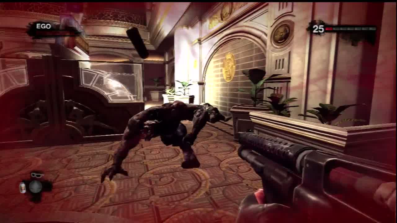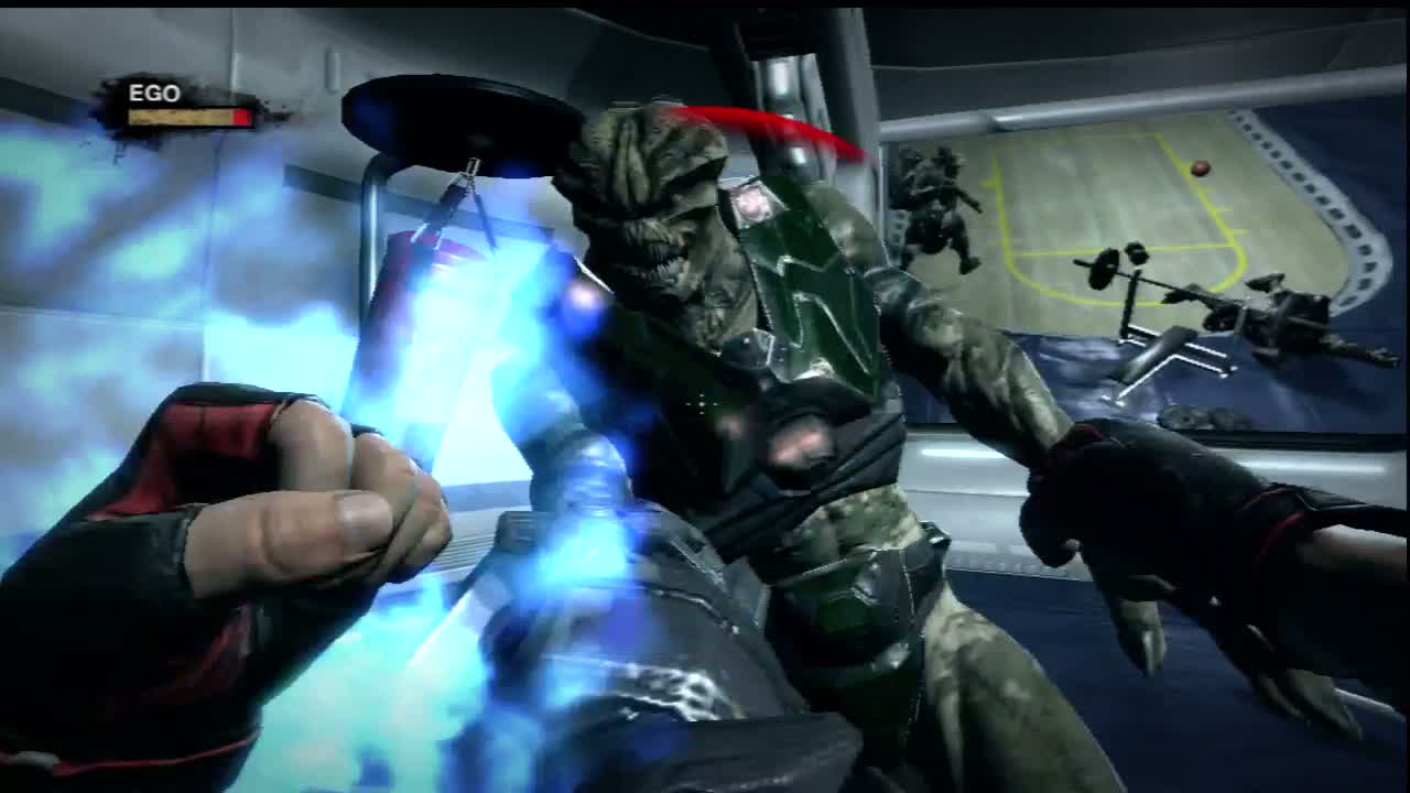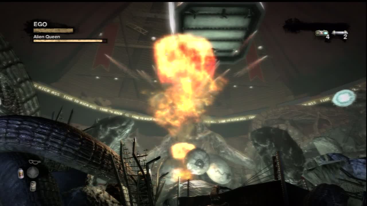 The guns in the game are pretty cool but they do take some getting used too, especially the alien laser rifles. I have my favorites though like the shotgun, pistol and rocket launcher. There is the three barrel ripper which is a machine gun but I find it to be my least favorite gun, since the ammo goes way to fast even holding up to over 150 rounds. I would say keep the rail gun handy which is a one shot kill when it is available. The explosives are impressive especially the laser mines. The power up items like steroids give you a strength boost which turn your fist into one hit kills and the beer gives you an extra shield boost, but it is your ego meter that acts as your shield. If you take damage hide behind something for a bit until your ego recharges and you are good to go.