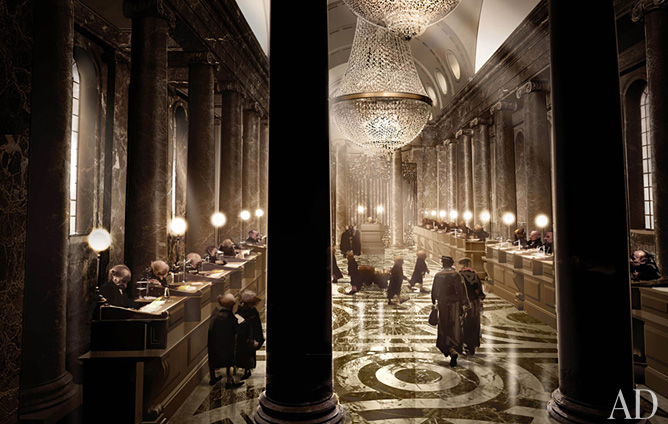 Found some sets of Harry Potter and the Deathly Hallows Pt 2, on Architectural Digest. It’s quite clear that the whole look and feel since the first movie have changed, this will by fair probably be the best movie yet! Especially in the Gringotts Bank scenes, there is a definite change there. I always wondered if JK Rowling has a lot of say how things look, since she is the one that made the world up. I should assume so. Harry Potter and the Deathly Hallows Pt 2 is out July 15, get hyped!