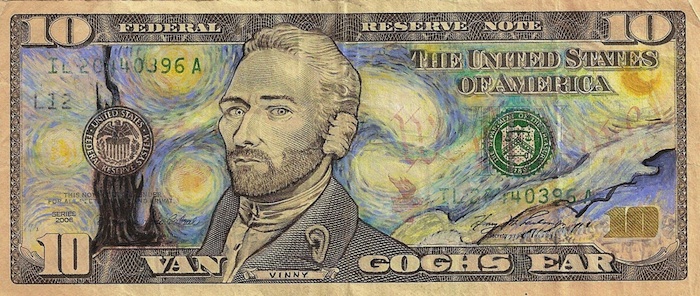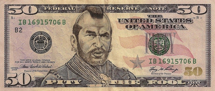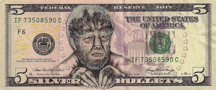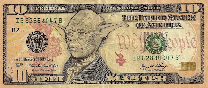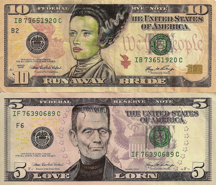 I doubt now a days that many younger people know about the people we put on our money and I bet that many of then think Ben Franklin was a President of the USA (hint: he wasn’t). So why don’t we put people, real or not, that we are more familiar with on our money instead! I think artist James Charles has the right idea with his currency manipulations. Displaying in a gallery show in San Fransisco until June 4th the show, American Iconomics, shows the artist alterations of actual currency with well known contemporary pop culture icons. It is really amazing how he painstakingly altered this money to look like it was actually made at the U.S. Mint. Check out some Charles’ work below and if you are in San Fran check out the show at the Shooting Gallery.
