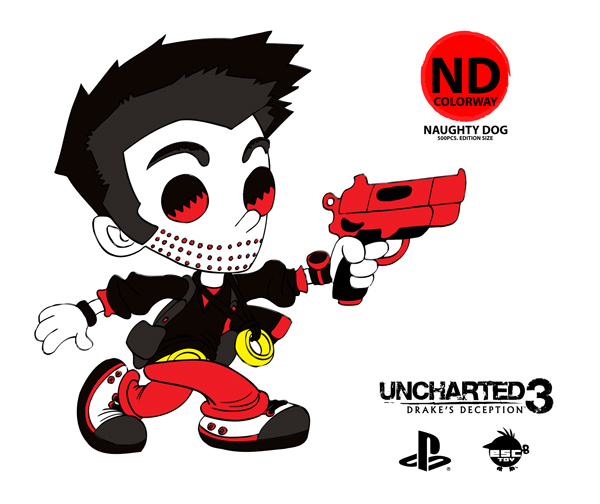 ESC-TOY EXCLUSIVE!!! Finally available for pre-order is the new Uncharted Nathan Drake limited edition vinyl figure. This design is based on the stylized translation by artist Erick Scarecrow. The 7″ vinyl figure is a combination of vinyl and PVC materials along with minor articulation. This is the “Naughty Dog” colorway which is limited to 500pcs worldwide for this series. Each figure comes packaged in blister tray with window box.