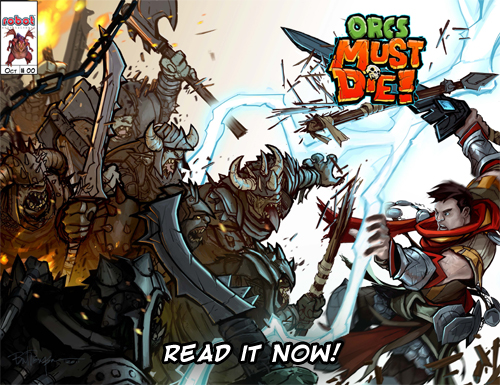 Robot Entertainment has digitally released Orcs Must Die! Issue #0, the official back story to the upcoming downloadable game Orcs Must Die! The single-issue comic tells the story of a world endangered by savage monsters and of the heroes that rose up to drive them back. The events in Orcs Must Die! Issue #0 lead directly to the opening cinematic of the game, and can be downloaded for free at the official Orcs Must Die! website. As a bonus, the comic features an Orcs-inspired art gallery of original pieces by Robot Entertainment artists and friends of the studio.