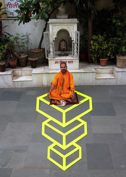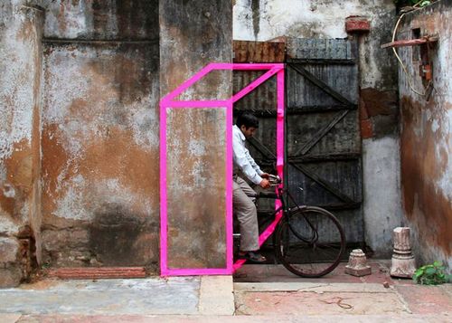 It’s just amazing what Askash can do with a simple colorful roll of tape. He’s taken his awesome geometric tape art to India with some dope shots. Check some of them out below in our gallery.