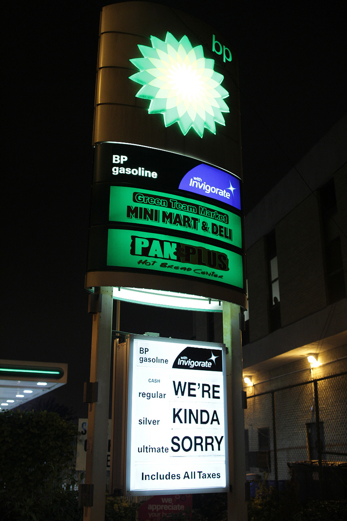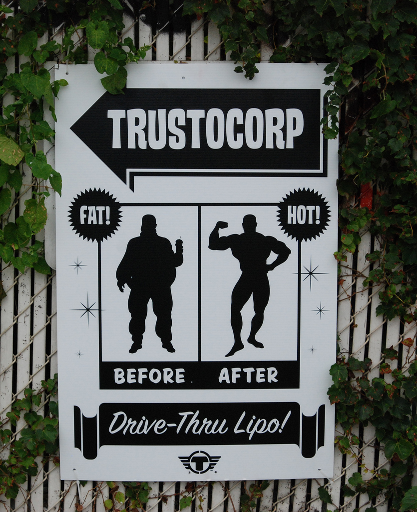 Who wants to pay some doctor thousands of dollars for plastic surgery when you can D.I.Y. with a car vacuum for a quarter? Well that’s what Trustocorp is offering at a gas station in Brooklyn in their latest campaign of disinformation. Looks like they hit a nice BP gas station and “altered” some of their signage offering a real full service experience. Check out some shots in the gallery below.