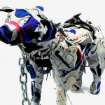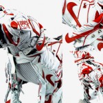 English designer Vinti Andrews, known for her reconstructive design techniques, has constructed a new series of custom dogs made out of classic Nike sneakers including Air Force 180′s, Air Max 1′s and Dunk Lo’s. The Nike Dog in several iterations is adorned with a spiked necklace and a heavy duty walking chain. The sculptures are available now via BEAMS.