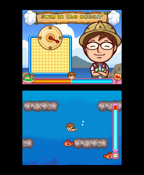 Camping Mama is best described as a casual RPG, with a top down view. Most of the games that are in Camping Mama are things that haven’t been seen before in the other Cooking Mama series. However there are some minigames that I’ve seen before like the crafting ones. Each area has mini stages where you have to navigate through to complete mini games and find treasures before locating either Mama or Papa. Your gold medals are based off all the things on the map, unlike before where it was just based on the task at hand. I like this approach because it makes you want to explore the map, but keep in mind that if you mess up on one of the tasks, say the last one, you have to do the whole map over. The mini tasks is in the map are re-playable, so you can play them over and over before doing the last “main” task.