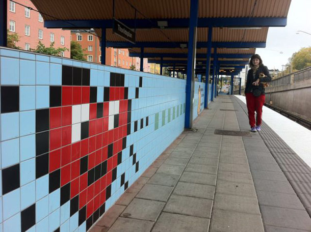 A Stockholm metro station has been redecorated with pixel-art inspired by classic games.