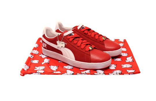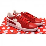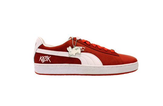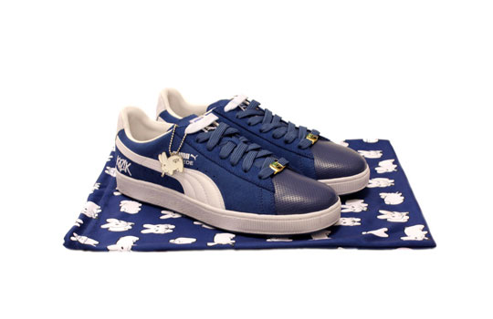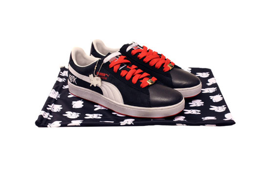 Kozik gets together with Puma to collaborate on the iconic Suede low top sneaker. Known for his Smoking Bunny character, the artist decided to with the theme and incorporated the character into the pack. You now find the Smoking Bunny on the heel, on the in-sole and on a special metal hang tag, as well as the dust bag of each sneaker. Overall the pack consists of three colorways of the sneaker.