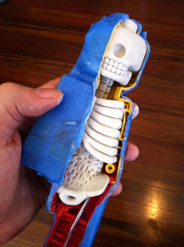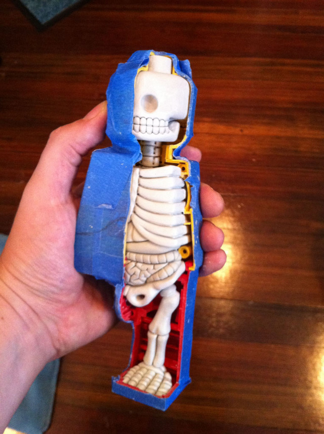 Jason Freeny is incredibly talented with his renditions of the anatomy of toys, cartoon characters, and randomness. Below you can see creation of this little dude. Check out his other work at facebook.com and his website.