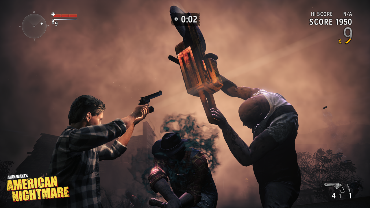 The main story mode in Alan Wake’s American Nightmare is part of the ‘Night Springs’ TV show fiction and offers an exaggerated pulp action adventure where the horrors of reality have the all too easy habit of coming true. Alan Wake finds himself stuck in an altered reality filled with dangerous shadows; he must leap into action and pursue his evil doppelganger, Mr. Scratch, across the Arizona mesa towards the town of Night Springs. Scratch, a supernatural serial killer, has his evil plans set on Wake’s wife, Alice. Wake must learn to control reality itself and unravel the secret to Mr. Scratch’s demise while using the power of light to put an end to the darkness.