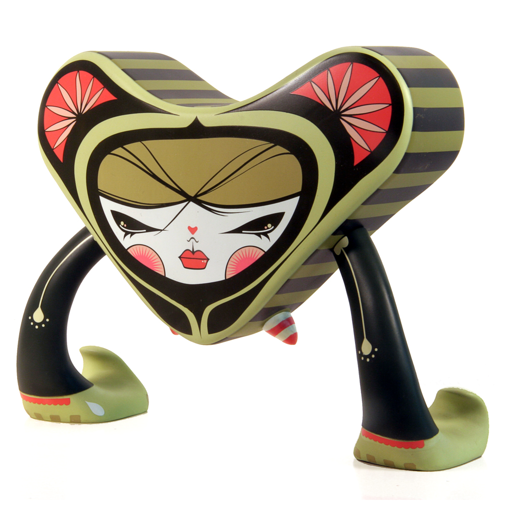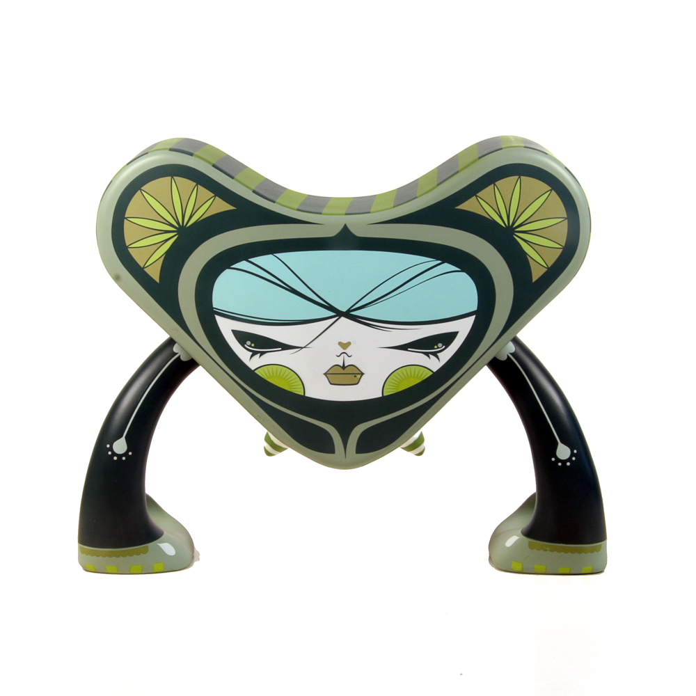 San Francisco artist Julie West lends her talents to the A-Type platform with a design that is both enchanting and dynamic. Taking advantage of every surface of the figure, whether facing forward, backwards or upside down, each posture gives the A-type a different look and personality.