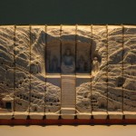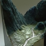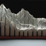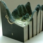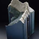 So I carve landscapes out of books and I paint Romantic landscapes. Mountains of disused knowledge return to what they really are: mountains. They erode a bit more and they become hills. Then they flatten and become fields where apparently nothing is happening. Piles of obsolete encyclopedias return to that which does not need to say anything, that which simply IS. Fogs and clouds erase everything we know, everything we think we are.