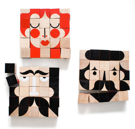 Pretty neat new puzzle-like product from Brighton designers Zoe Miller and David Goodman of Millergoodman, 25 Painted wooden blocks to form different faces (or pictures or shapes). Weird? Nope, really cool interactive toy for kids to develop their thinking and creative skills.