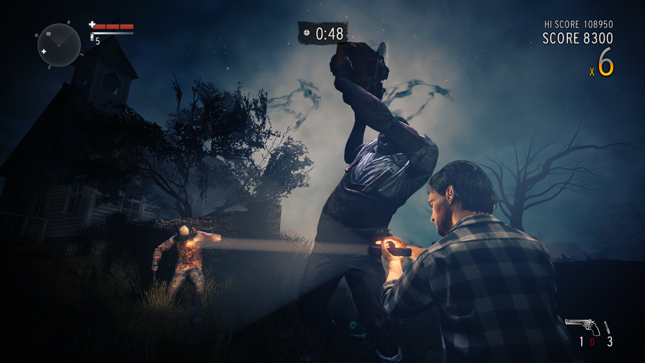 The single player campaign comes from the darkest corners of the ‘Night Springs’, a Twilight Zone inspired fiction. American Nightmare is an exaggerated and gritty rendering of that world – where the horrors of reality have the all too easy habit of coming true. When Wake becomes stuck in the alternate shadowed world of Night Springs, he must hunt down his evil doppelganger, Mr. Scratch, to find the answers. A supernatural serial killer, Scratch has his evil mind fixated on Wake’s wife, Alice, and even more horribly, Wake’s demise. To survive and thrive in the darkest of nights, Wake must learn to control reality itself and unravel the secret to Mr. Scratch’s demise with a trusty flashlight by his side and whatever weapon he can find.