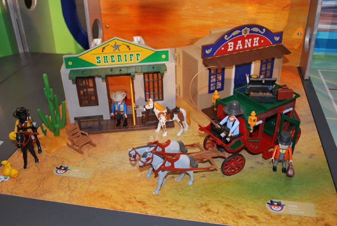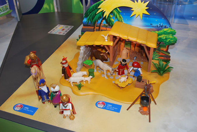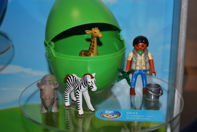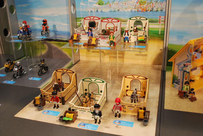 I have some fond memories of playing with Playmobil figures when I was young so I was excited to visit their booth at Toy Fair 2012. One thing that immediately struck me when I walked into the booth was that these were not the same toys I remembered. In fact these were BETTER than the Playmobil figures of my youth. This year’s line up has some very expansive and detailed playsets that should really get kids out there fully engaged with their imagination. Our favorite playset was the ‘Soccer’ stadium set that was actually a fold-up travel case so the whole set can be packed up at a moments notice. All the sets are so detailed it looks like they thought of everything, as evidenced by the inclusion of a little field mouse hiding amongst the bales of hay in the ‘Farm’ set. There is also a series of collectible blind packaged figures that will feature unique outfits that can be interchangeable. There are a lot of great stuff coming from Playmobil this year, and there’s something fun for everyone, not to mention their Olympic set! Check out some great stuff in our gallery below.
