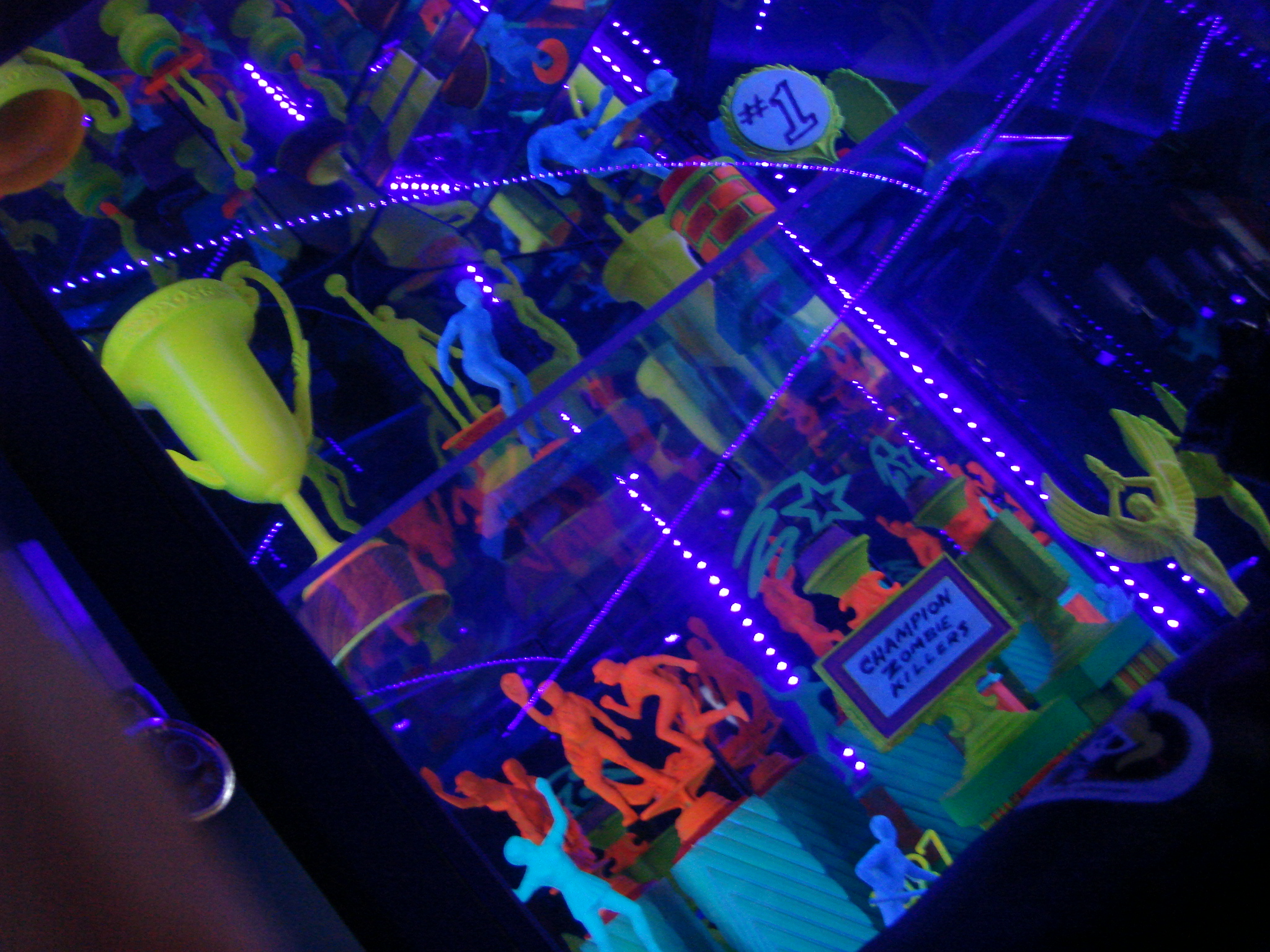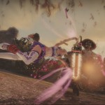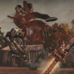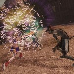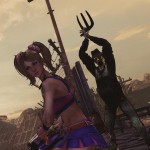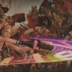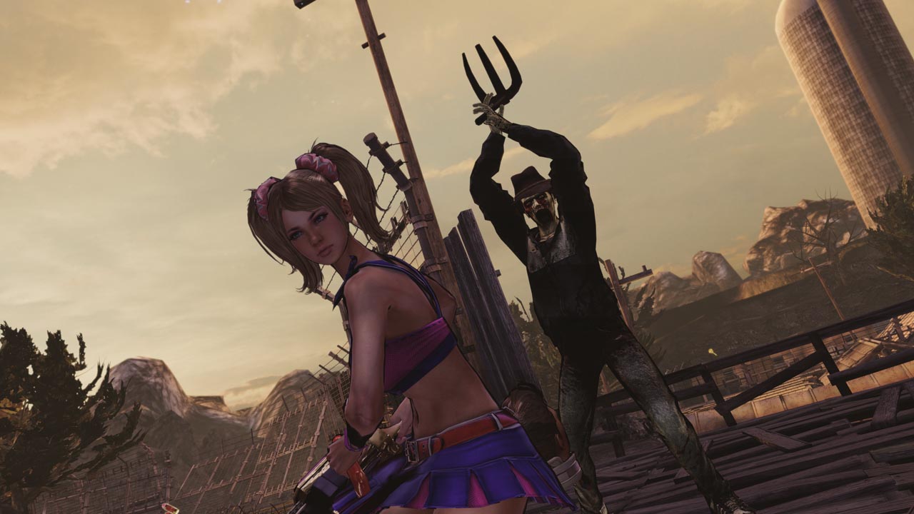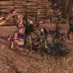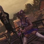 I played as the main character, Juliet Starling, who is a cheerleader at her high school San Romero High (a nod to the director of the ‘Living Dead’ series, George Romero). A zombie outbreak has taken over her school so she must use her cheer-leading skills in conjunction with her chainsaw and take out the zombie hordes. The stage I played took place in the hallways of her high school, I confronted plenty of undead who were either trying to eat me or the other survivors that were still around. The gameplay was similar to that of ‘Devil May Cry’ or ‘Bayonetta’, using outrageous acrobatics in combination with weapons to take out zombies. Pulling off special combos, gave me lots of rainbows and hearts that burst from the enemies as they expired. The gore in the game is very cartoony but some of the language does run a bit blue, but it’s amusing. There are breaks in the usual fighting mechanics when you take your boyfriend’s decapitated head (which Juliet removed after he was bitten by zombies to keep him alive with some kind of dark cheer-leading magic) and place it on certain headless bodies that glowed blue. When his head is placed on the headless bodies, he is able to remove obstacles blocking Juliet’s path. I’m not sure if he could be used to fight enemies as well, but I know that he can only use the body for a limited amount of time. Besides sawing zombies into pieces with her chainsaw, Juliet can also turn the chainsaw into a giant gun and blast away at baddies. I didn’t get to play very long and I also didn’t get to appreciate the soundtrack, which is done by Akira Yamaoka, since there were no headphones provided but the game was still pretty fun.