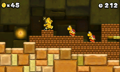 The game records all the coins players collect throughout the game, so completing a level is only part of the fun. Every level is filled with golden opportunities, such as gold rings that turn enemies into valuable gold versions and a Gold Flower that gives Mario the ability to turn almost anything in his path into coins.