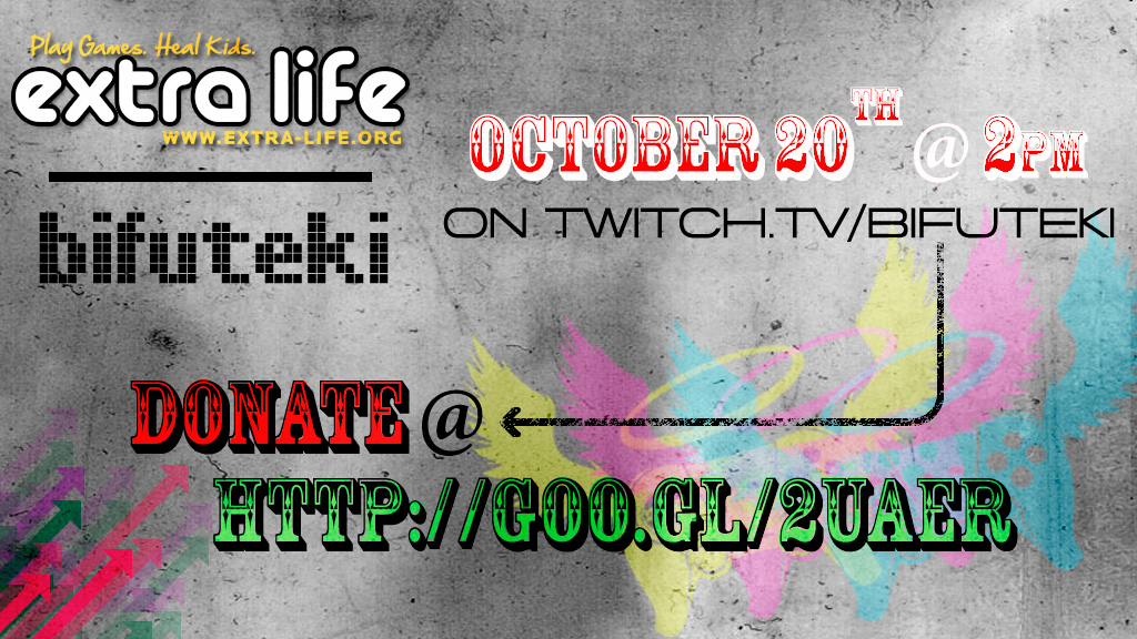 Don’t forget – Extra Life 2012: http://t.co/xhdpXaSv gaming for a cause! it’s tomorrow! If you want to game with us tweet @Bifuteki