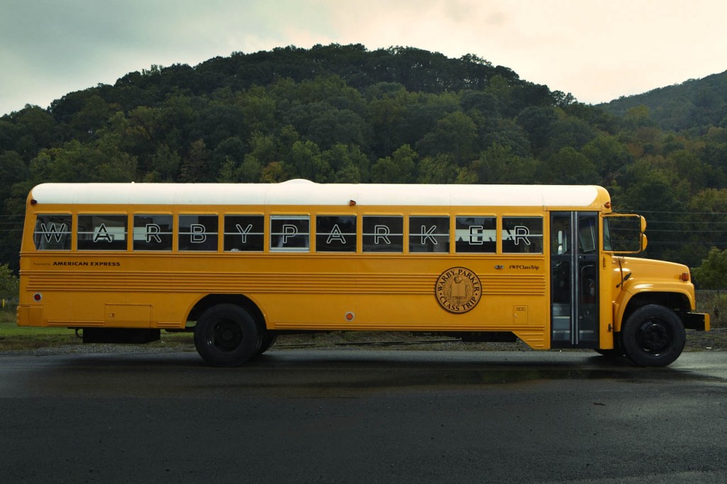 Over the next six months we’ll be covering approximately 4,350 miles (traveling at less than 60 miles per hour), visiting a total of nine cities, and will be documenting all of it here. This isn’t your average road trip, though—it’s the Warby Parker Class Trip, presented by American Express; an endeavor to bring our showroom experience to a variety of cities across the country. Our vehicle of choice? A yellow school bus, decorated as a classic library with a mixture of novels, special Class Trip notebooks, and frames on its wooden shelves. We’ll be driving a Ford Escape as our team support car, difficult to miss in a bright Warby Parker blue.