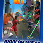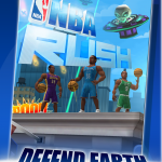 NBA Rush incorporates all of the fun gameplay elements that define the endless runner genre with a basketball spin. To change directions, NBA players execute crossover, behind-the-back and through-the-legs dribble moves. When juking left and right doesn’t get a player through the alien defense, the NBA players’ hops will save the day.