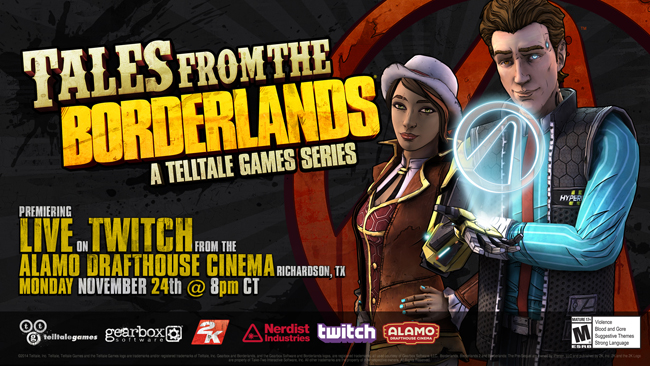 Join Telltale Games and Gearbox Software at the Alamo Drafthouse in Richardson, TX on Monday, November 24th to be among the very first to see the season premiere. Can’t make it out in person? No worries – Nerdist.com will be streaming the event LIVE on Twitch! Tickets are limited, and FREE w/ the purchase of a $4 food voucher.
