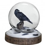 Dark Horse and HBO Global Licensing are excited to announce a new addition to their Game of Thrones product line: the Three-Eyed Raven Snow Globe. The Three-Eyed Raven Snow Globe sculpture is finely detailed and beautifully packaged in a full-color collector box. The glass sphere is 4.7 inches in diameter, and with the sculpted base stands 6.5 inches high. The base of the globe is inscribed with the words the raven speaks to Bran: “Look for me beneath the tree…North.” The Three-Eyed Raven Snow Globe is the perfect companion piece to 2014’s Weirwood Tree Snow Globe.