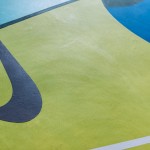 “My approach to the courts was very similar to how I would work on canvas. I wanted to create something that was true to my language, but also considerate of this being a court that people are playing on,” he explains. “I wanted to find the sweet spot where it works visually and functionally — how its broken up by the game’s lines and works with my images. It will have an intimate effect on the players that use the court.”