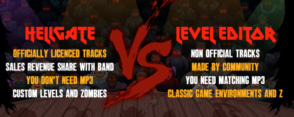 The Hellgate is composed of official songs licensed by the official bands. It features a custom music and level design made by the Headbang Club, giving a full experience to the players.