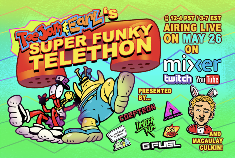 ToeJam & Earl’s Super Funky Telethon will be live from Van Nuys on Mixer, YouTube and Twitch on May 26 from 12 pm to 4 pm PST and 3 pm to 7 pm EST.