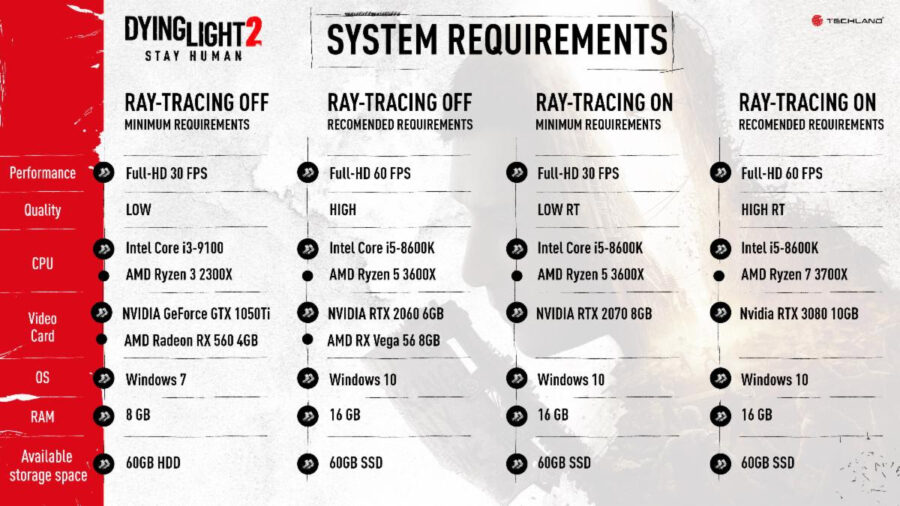 PC Specs for Dying Light 2 Stay Human — Min., Recommended, Ray Tracing