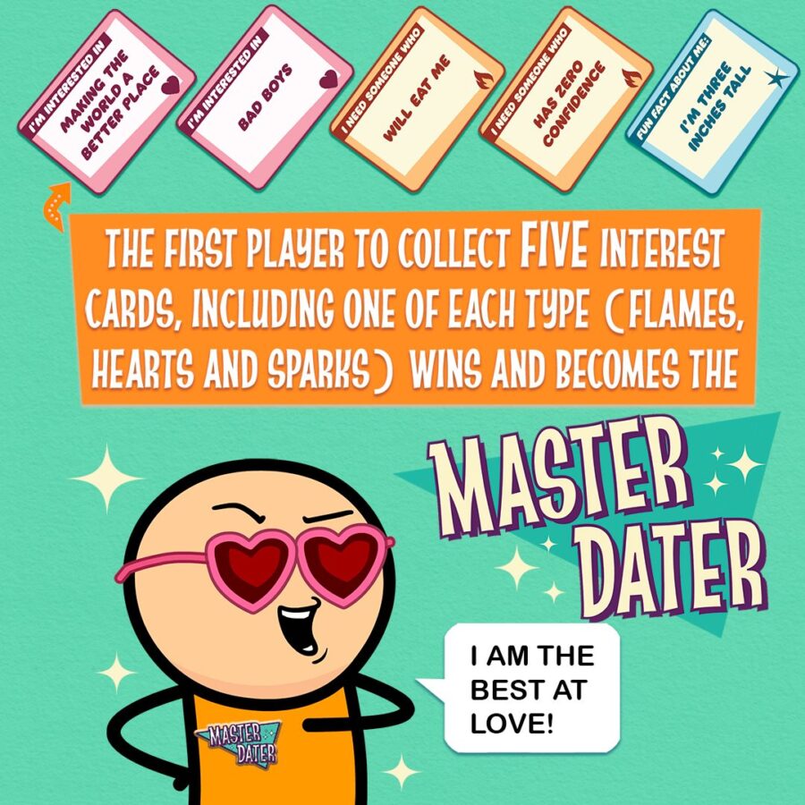 While at PAX Unplugged we got the chance to demo Cyanide & Happiness‘ (Explosm) latest comedic card game, Master Dater. Master Dater is a party game where you create perfect, f**ked up dates based on three highly specific dating interests. You win by arguing and pandering your way into each others’ hearts. There’s also a day one expansion, Master Dater Uncut (available on Explosm and Amazon) that introduces all the X-rated filthy cards that would make retailers cry. You can get Master Dater + Master Dater Uncut as a combo from the Explosm Store and get FREE SHIPPING in the United States!