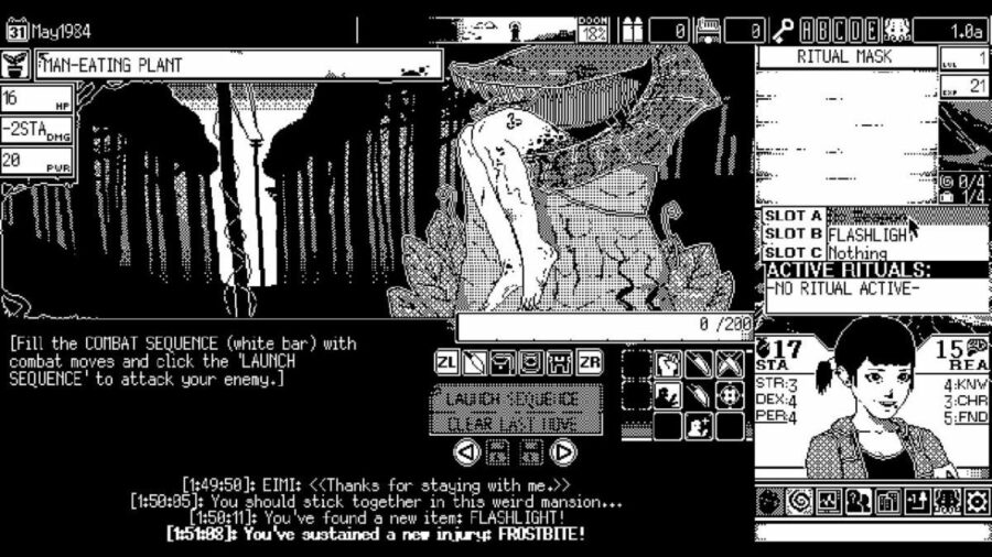 Fill in the stylistic gaps of what lies behind each corner in its 1-bit artwork crafted entirely on Microsoft Paint and inspired by vintage Macintosh graphics. With its eerie rural city scenes and psychologically thrilling monsters and bosses, WORLD OF HORROR feels like a page torn straight from the works of Junji Ito and H.P Lovecraft.