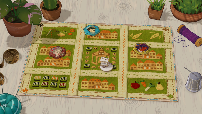 In this cozy board game, the player’s main task is to make a quilt from patterned fabric scraps. By smartly combining the colors and patterns of the scraps, the player can score points for the completed design and sew on buttons to attract adorable cats, who each have their own preferences for bedding patterns.