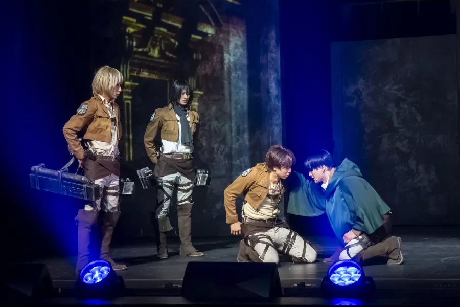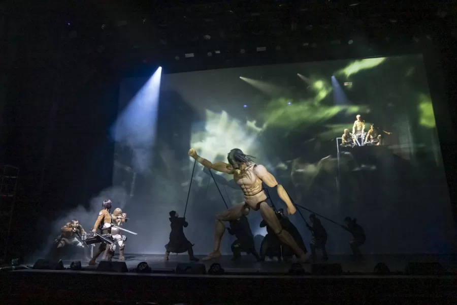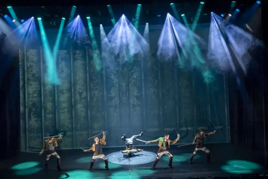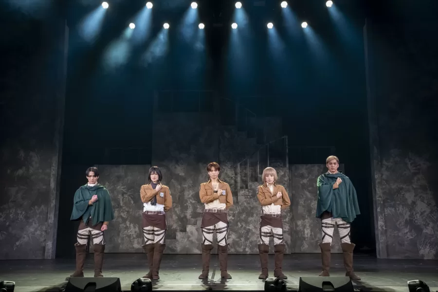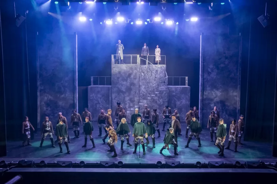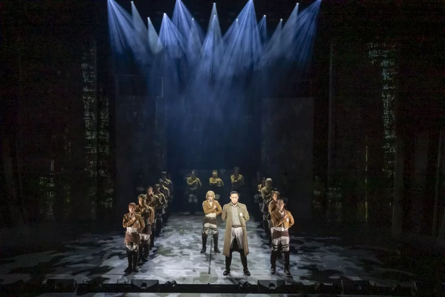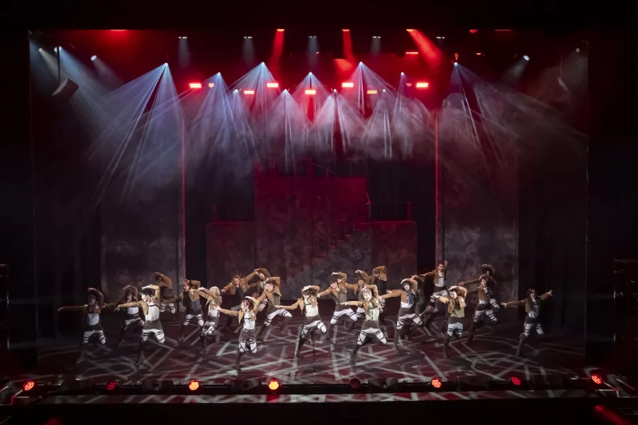 ATTACK on TITAN: The Musical has book by Masafumi Hata, music supervision by KEN THE 390, and lyrics by Kaori Miura, and combines conventional musical theatre techniques with state-of-the-art technology, performed by a cast of 35.